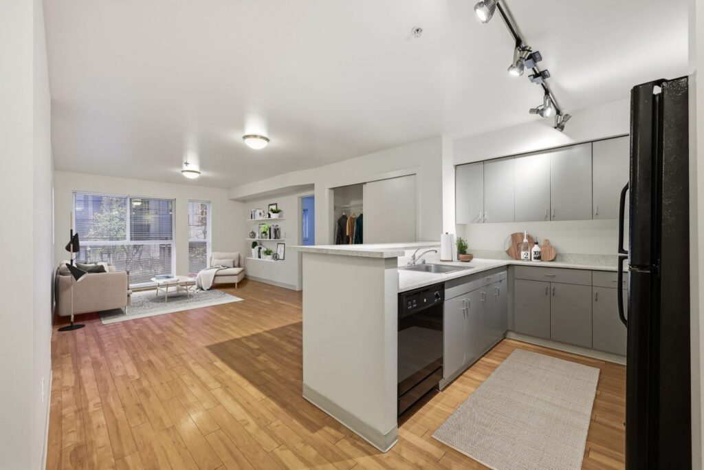 Thanks for checking out Borealis Apartments. We are a locally owned and professionally managed community in Seattle, WA. Borealis is conveniently located right by Denny Park, offering easy access to green space while being a short distance from South Lake Union, local cafés, and excellent transit options. We have studio, 1-, and 2-bedroom apartment homes. Our units are a great value featuring wood-style flooring, in-unit washer and dryer, large windows for abundant natural light, and spacious, efficient layouts designed for urban living. Our community features a rooftop deck with skyline views, a fully equipped fitness center, secure package lockers, controlled-access entry, and bicycle storage.